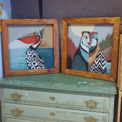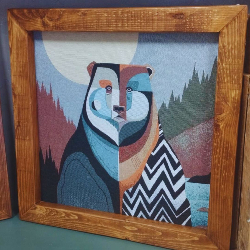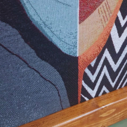 Tapeçaria étnica multicolor e molduras em madeira rústica certificada FSC 🌿 — cada moldura é única, como a própria natureza.