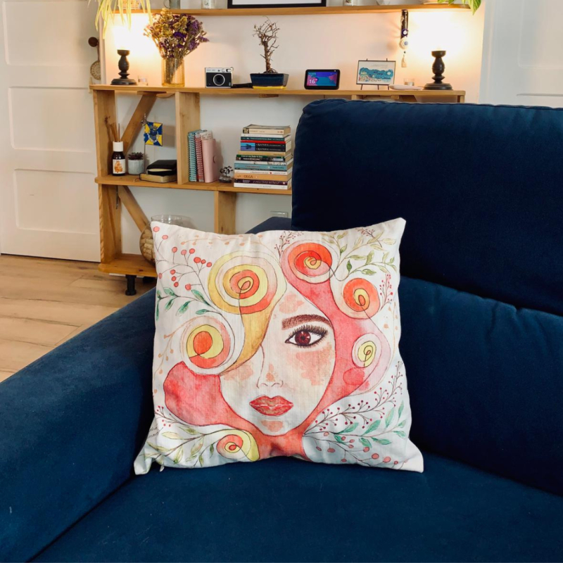 Cada almofada nasce de uma ilustração original em aguarela de Leidiana Ramalho, criada em exclusividade para a Casa Velha-Móveis com História – Móveis com História.