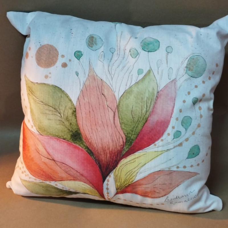Cada almofada nasce de uma ilustração original em aguarela de Leidiana Ramalho, criada em exclusividade para a Casa Velha-Móveis com História – Móveis com História.